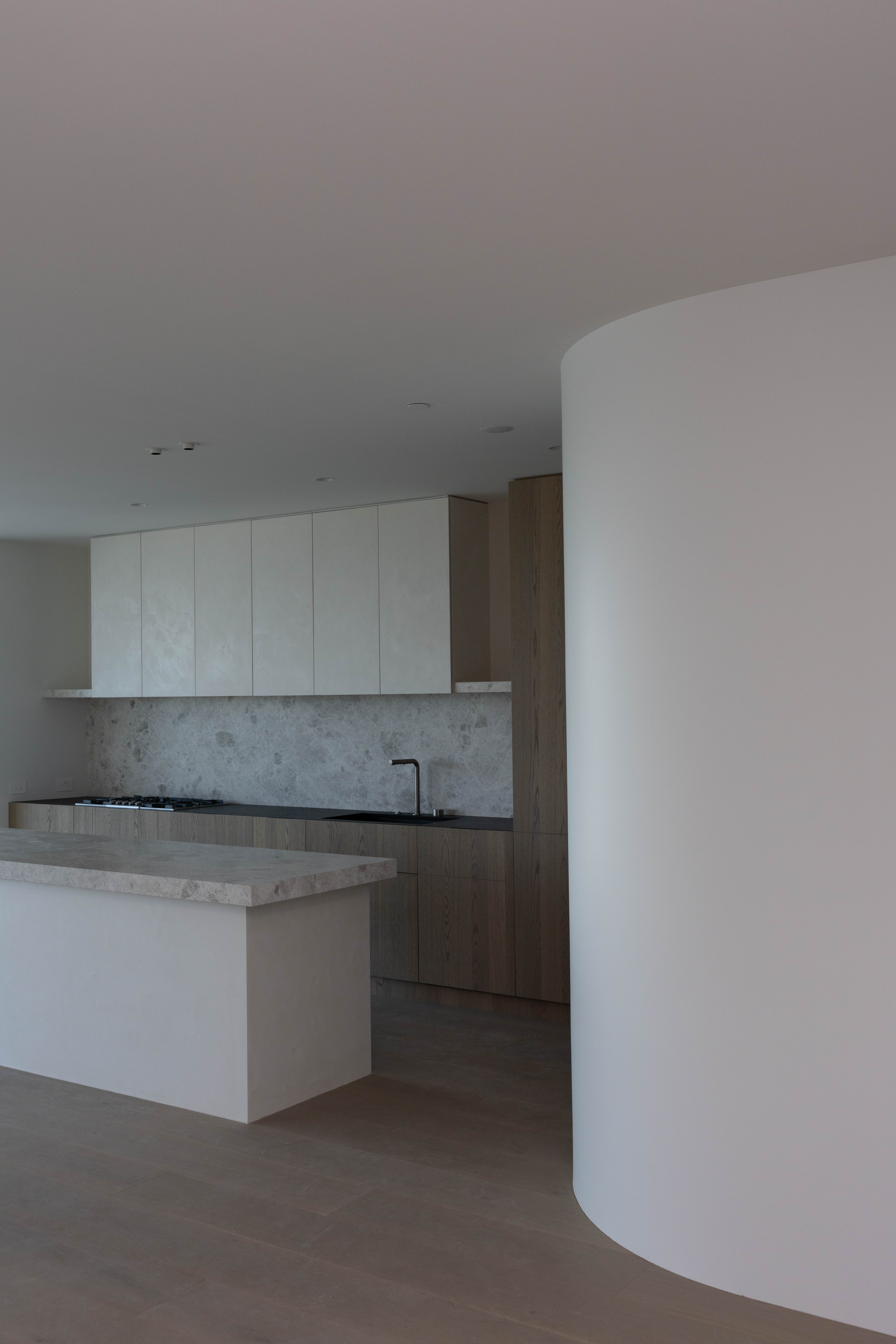 Its carved façade negotiates the tension between privacy and exposure, engaging Jervois Road through a rhythmic composition of concave bays. These voids, shaped by splayed geometries, moderate sightlines while admitting light and shadow, producing spatial depth and subtle visual complexity. In conversation with its neighbour, 113 Jervois, Exhibit offers a considered counterpoint - a subtle inversion of form.