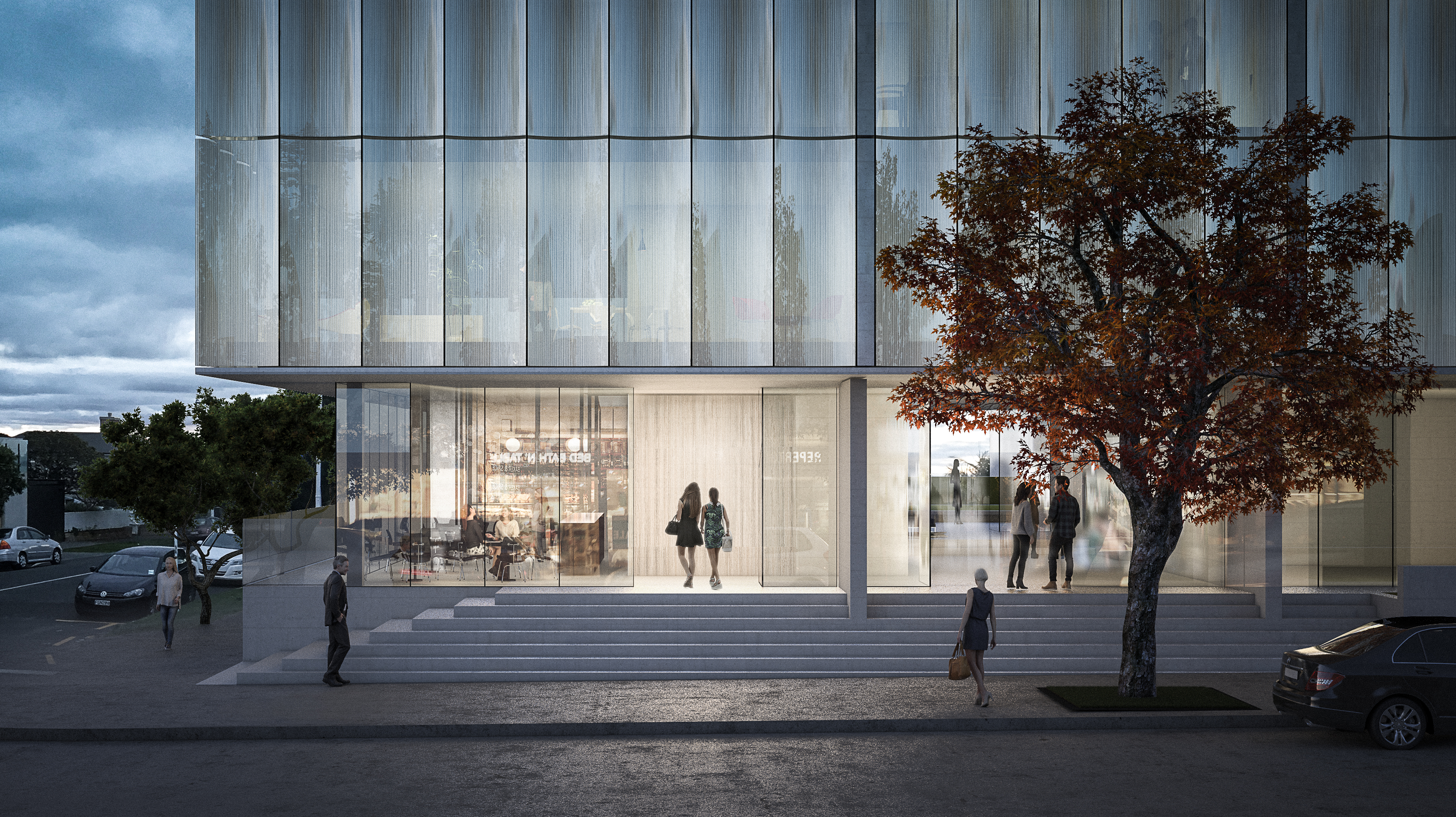 The ground floor has retail spaces at the street corners to help activate these spaces and create a public connection from the street.